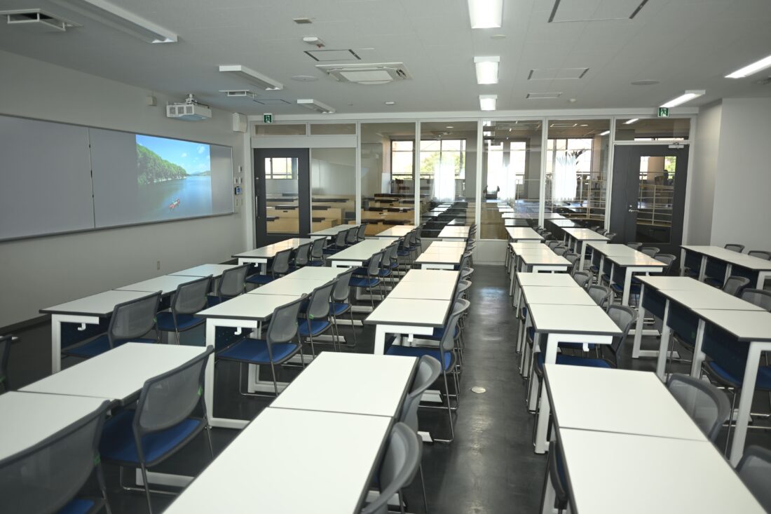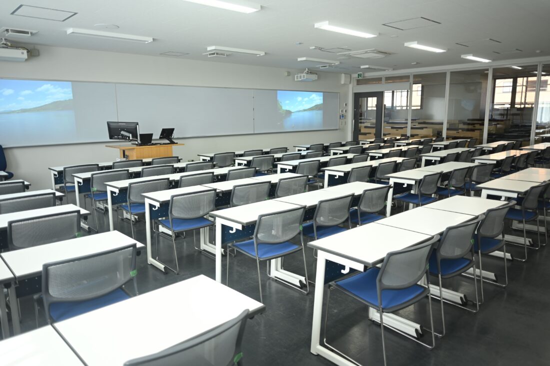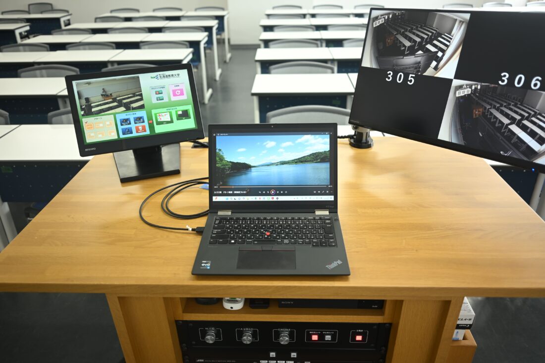 北海道教育大学札幌校様では、隣り合う3つの小規模講義室を活用しながらも、限られた教員数で大人数授業を運営する方法が課題となっていました。