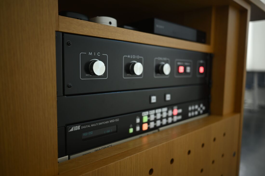 新しい設備を一から導入するのではなく、既に整備されているプロジェクターや音響システムを最大限活かしたいというニーズのもと、「アドオン型」で教室同士を連携させるシステムの導入を実施いたしました。